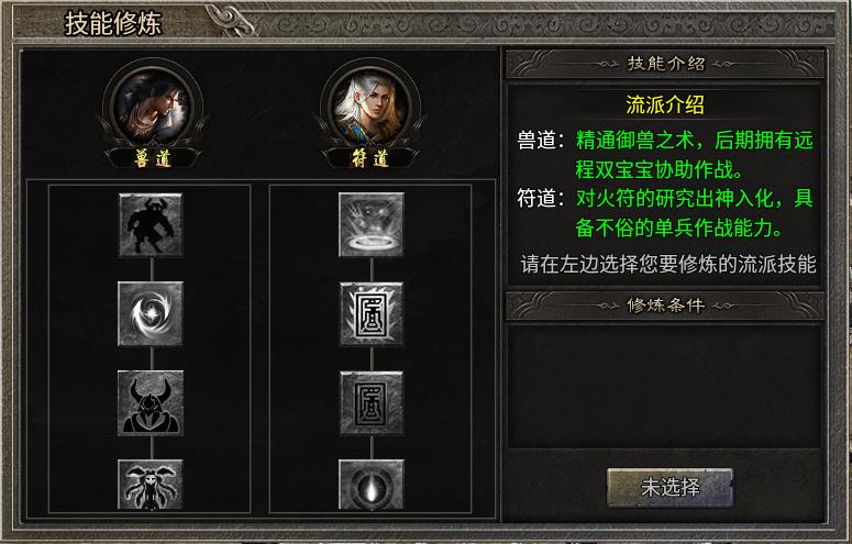 道士包括兽道和符道,兽道玩家把道士的带狗特色发扬光大,后期可以拥有远程双宝宝协助作战,符道等于是加强单兵作战能力,用火符来弥补输出不足。