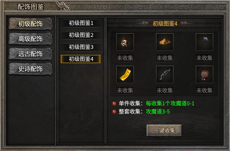 最后的配饰系统相对简单一些,在玩家刷怪的过程中就有几率顺手获得,配饰共有4个品级,每个品级有十余件,可以搭配不同职业流派,来增强流派的专业能力。因为获取简单,所以图鉴系统中也包括了配饰。