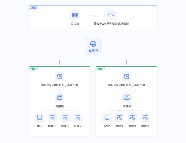 针对这些难点,煤矿行业内头部5G专用网络提供商、工业大数据平台运营商与智能化工程服务商等,大量企业选用了贝锐蒲公英全球视频监控组网解决方案。